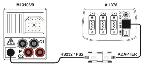 Połączenie do synchronizacji czasu oraz wyników pomiędzy przyrządami MI 3108/9 oraz A 1378