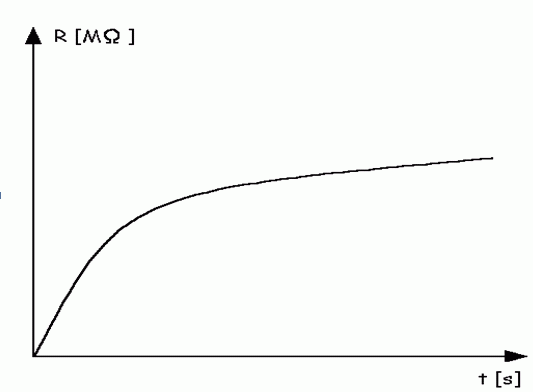 Zależność wskazań przyrządu podczas pomiaru rezystancji izolacji od czasu pomiaru: