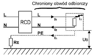 Schemat obwodu zabezpieczonego wyłącznikiem RCD.