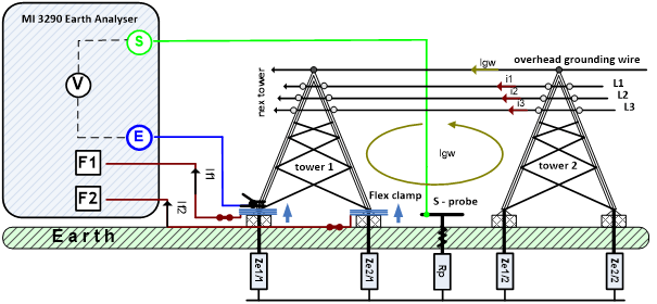 Ta unikatowa metoda pomiarowa wykorzystuje “prąd indukcyjny” lub inny prąd płynący w przewodzie uziemiającym w celu określenia wybranych rezystancji uziemienia indywidualnych punktów uziemiających. Metoda ta wykorzystuje jedynie jedną sondę pomocniczą (S).