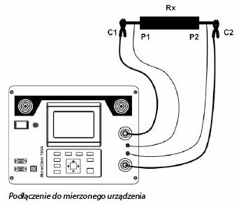 Prąd pomiarowy przepływa przez nieznaną rezystancję Rx2 wykorzystując przewody C1 oraz C2. Umiejscowienie tych przewodów nie jest czynnikiem krytycznym, ale powinno zawsze znajdować się poza przewodami P1 oraz P2. Spadek napięcia na szerokości rezystancji jest mierzony na szerokości pomiędzy P1 oraz P2, dlatego powinny one być umieszczone dokładnie w punktach pokrywających się z mierzoną rezystancją.