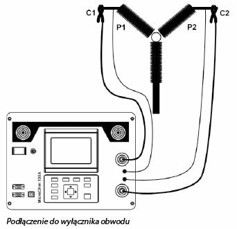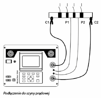Przy pomiarze rezystywności gruntu prąd wprowadzany jest do gruntu za pomocą dwóch prądowych elektrod (C1/H i C2/E).