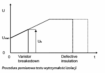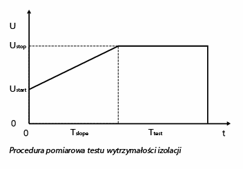 Test wytrzymałości izolacji to jeden z podstawowych pomiarów izolacji. Zasada jest bardzo prosta, napięcie podawane jest na testowany obiekt przez określony czas lub do momentu przebicia napięcia przez izolację.