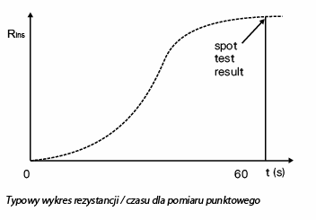 Jest to najprostszy i najszybszy sposób pomiaru rezystancji izolacji. Niestety tylko jeden pomiar, bez wcześniejszych testów może być wstępną oceną jak dobra lub zła jest izolacja. Przy tym pomiarze przyrząd jest podłączony przez izolację testowanego obiektu. Napięcie pomiarowe przyłożone jest przez stały okres czasu, przeważnie odczyt po 1 minucie jest zbieżny z wykresem.