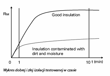 - Dobra izolacja przyjmuje mniej więcej stałą wartość rezystancji przy każdym napięciu.