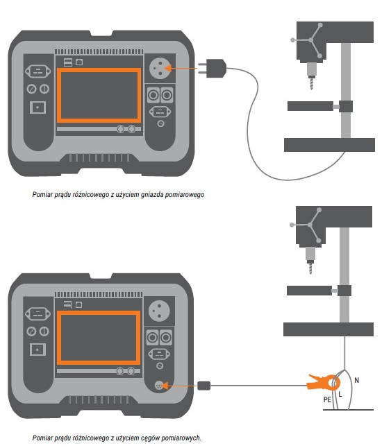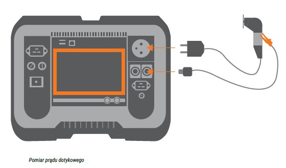 Pomiarów dotykowego prądu upływu dokonuje się poprzez podłączenie badanego urządzenia do gniazda pomiarowego, a następnie przeprowadzenie badania podłączoną sondą, którą dotyka się części przewodzących badanego urządzenia.