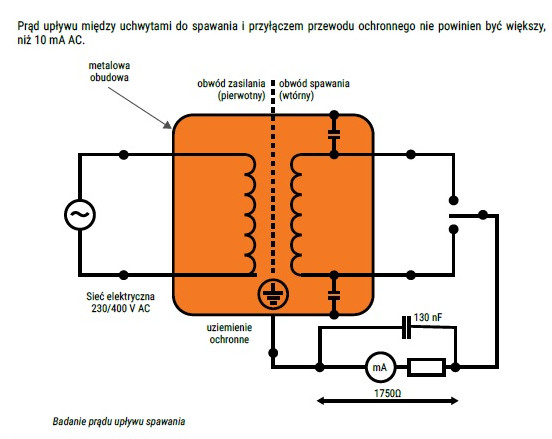 Pomiar prądu upływu obwodu spawania.