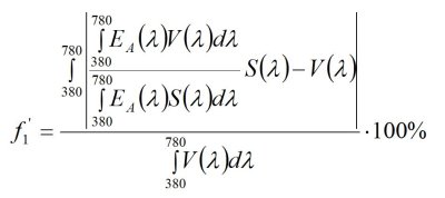 Jednymi z najistotniejszych parametrów charakteryzujących luksomierze są wartości błędu korekcji widmowej f1’ oraz błędu f1 wynikającego z różnic w rozkładzie widmowym źródła mierzonego i kalibracyjnego. Wartość parametru f1’, będącego miarą niedopasowania czułości luksomierza do krzywej V(λ), określonego przez CIE wyrażony jest: