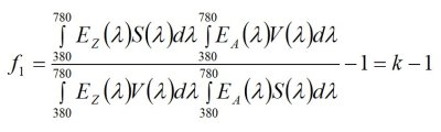 gdzie: EZ(λ) – względny rozkład widmowy mocy promieniowania rozpatrywanego źródła światła, EA(λ) – względny rozkład widmowy mocy promieniowania, przy którym wykonano wzorcowanie głowicy fotometrycznej, V(λ) – wymagana względna czułość widmowa głowicy fotometrycznej, S(λ) – względna rzeczywista czułość widmowa głowicy fotometrycznej.