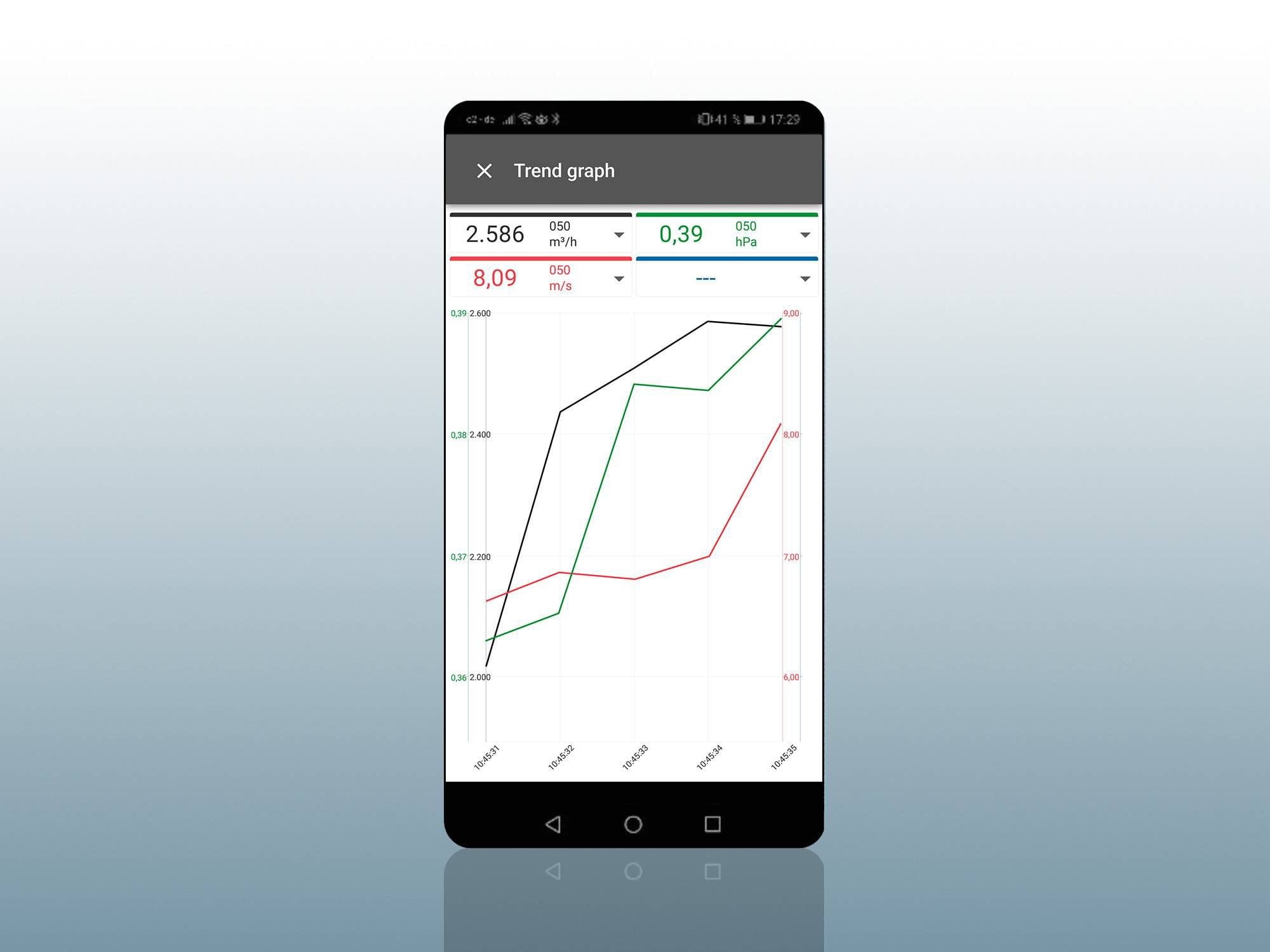 - Graficzne wyświetlanie wartości pomiarowych