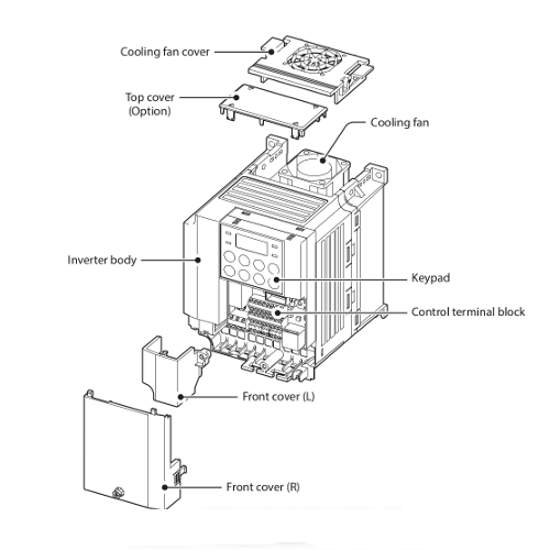 Dodatkowo, w całym typoszeregu mocy wbudowany jest filtr EMC kategorii C3 oraz moduł hamujący. Dla mocy 30 – 75KW włącznie, w obwodzie pośrednim prądu stałego zainstalowany jest dławik, poprawiający współczynnik mocy oraz redukujący współczynnik THDI.