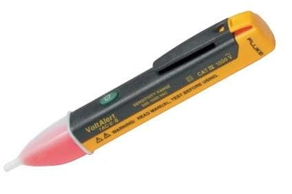 Próbnik napięcia prądu zmiennego Fluke VoltAlert jest wyjątkowo prosty w użyciu ? wystarczy przyłożyć końcówkę do listwy zaciskowej, wypustu lub przewodu. Jeśli na linii występuje napięcie, końcówka zaświeci się na czerwono, a urządzenie wygeneruje dźwięk.
