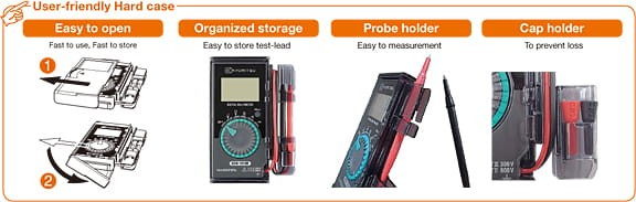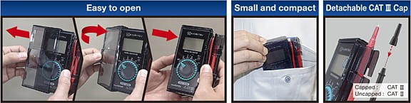 | AC V | 6.000/60.00/600.0V (Input impedance: approx. 10MΩ) ±1.3%rdg±5dgt (6.000/60.00V) (50/60Hz) ±1.7%rdg±5dgt (6.000/60.00V) (45 - 500Hz) ±1.6%rdg±5dgt (600.0V) (50/60Hz) ±2.0%rdg±5dgt (600.0V) (45 - 500Hz) |