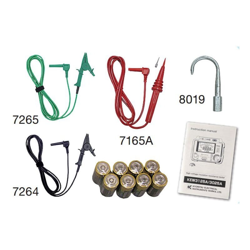 | Akcesoria podstawowe | 7165A (Sonda liniowa: 3m), 7264 (Przewód uziemienia: 3m), 7265 (Osłona przewodu: 3m), 8019 (Końc. haczykowa), 9180 (3025A Twarda waliza), 9181 (3125A Twarda waliza), LR14 (Baterie alkaliczne rozmiar C) – (8szt), Instrukcja obsługi |