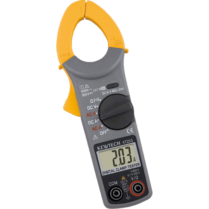 Cyfrowy miernik cęgowy KT 203 to bardzo udana konstrukcja japońskiej firmy Kewtech w klasie popularnych mierników cęgowych ACA/DCA, która przy wysokich walorach użytkowych zapewnia jednocześnie atrakcyjną cenę.