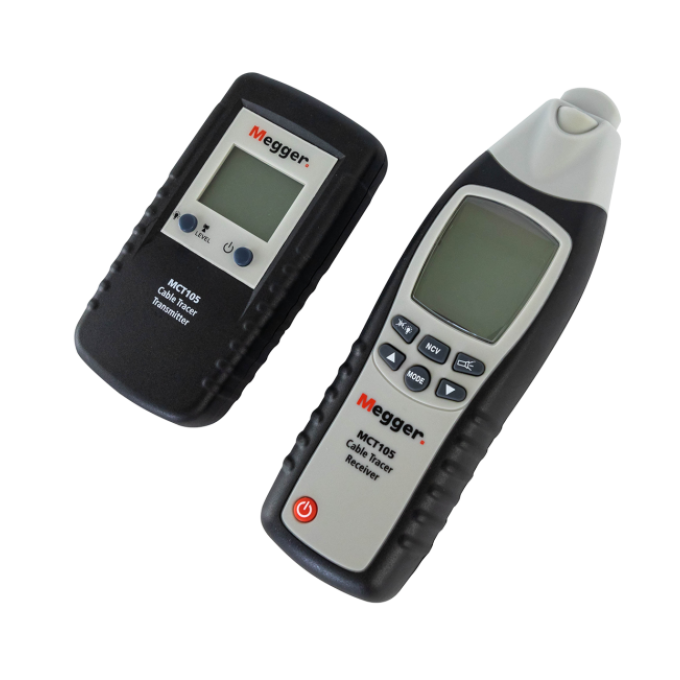 Zestaw Megger MCT105 zawiera oddzielny nadajnik i odbiornik. Został zaprojektowany, aby pomóc w wykrywaniu i śledzeniu kabli
