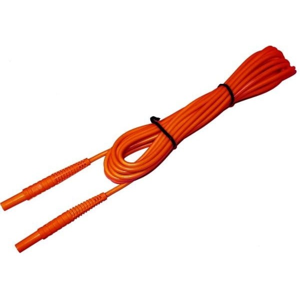 Przewód 20m czerwony zakończony wtykami bananowymi.