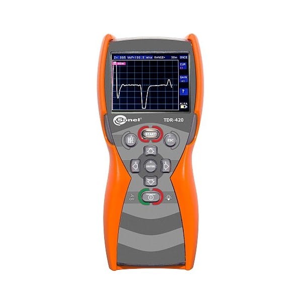 Reflektometr TDR-420 jest poręcznym cyfrowym lokalizatorem impulsowym (TDR – ang. Time-domain Reflectometer) przeznaczonym do identyfikacji i lokalizacji uszkodzeń w kablach elektroenergetycznych, telekomunikacyjnych i teletechnicznych. Reflektometr TDR-420 pozwala na zmierzenie długości kabla oraz określenie odległości do uszkodzenia lub zmiany impedancyjnej w zakresie od 4 do 6000 m w przewodach z żyłami metalowymi. Najkrótszy zakres pomiarowy o zasięgu 7 metrów i strefie martwej długości 0,6 metra pozwala na lokalizację uszkodzeń w bardzo bliskiej odległości od miejsca podłączenia urządzenia.