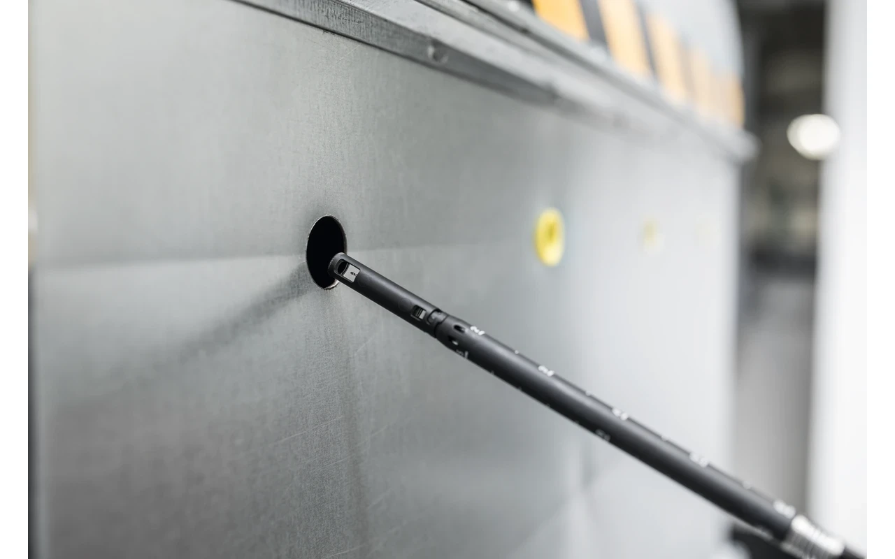 Szczególnie przydatne: możliwość obsługi przyrządu pomiarowego za pomocą przycisku na sondzie termicznej, np. do zapisania poszczególnych odczytów przy kalkulacji średniej punktowej, a także do uruchomienia lub zatrzymania pomiaru, podczas kalkulacji średniej czasowej.