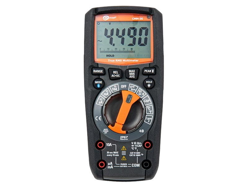 Sonel CMM-30 to miernik przemysłowy, łączący w sobie wszechstronność, nowoczesność oraz niezwykłą wytrzymałość. 11 podstawowych funkcji pomiarowych wraz z funkcjami dodatkowymi zapewnia szeroki wachlarz zastosowania. Komunikacja bezprzewodowa z aplikacją w telefonie umożliwia zdalne odczytywanie i zapisywanie pomiarów z miejsc trudno dostępnych. Automatyczne podświetlenie samo dostosowuje poziom jasności ekranu wraz z panelem sterującym do panujących warunków, natomiast wbudowana latarka pozwala na pracę w ciemnościach. Nowatorska konstrukcja łączy w sobie wytrzymałość na upadki, szczelność na poziomie IP67 oraz ergonomie obsługi urządzenia, nawet w rękawicach dielektrycznych. Urządzenie to jest stworzone dla elektryków ceniących sobie jakość wykonania oraz innowacyjność.