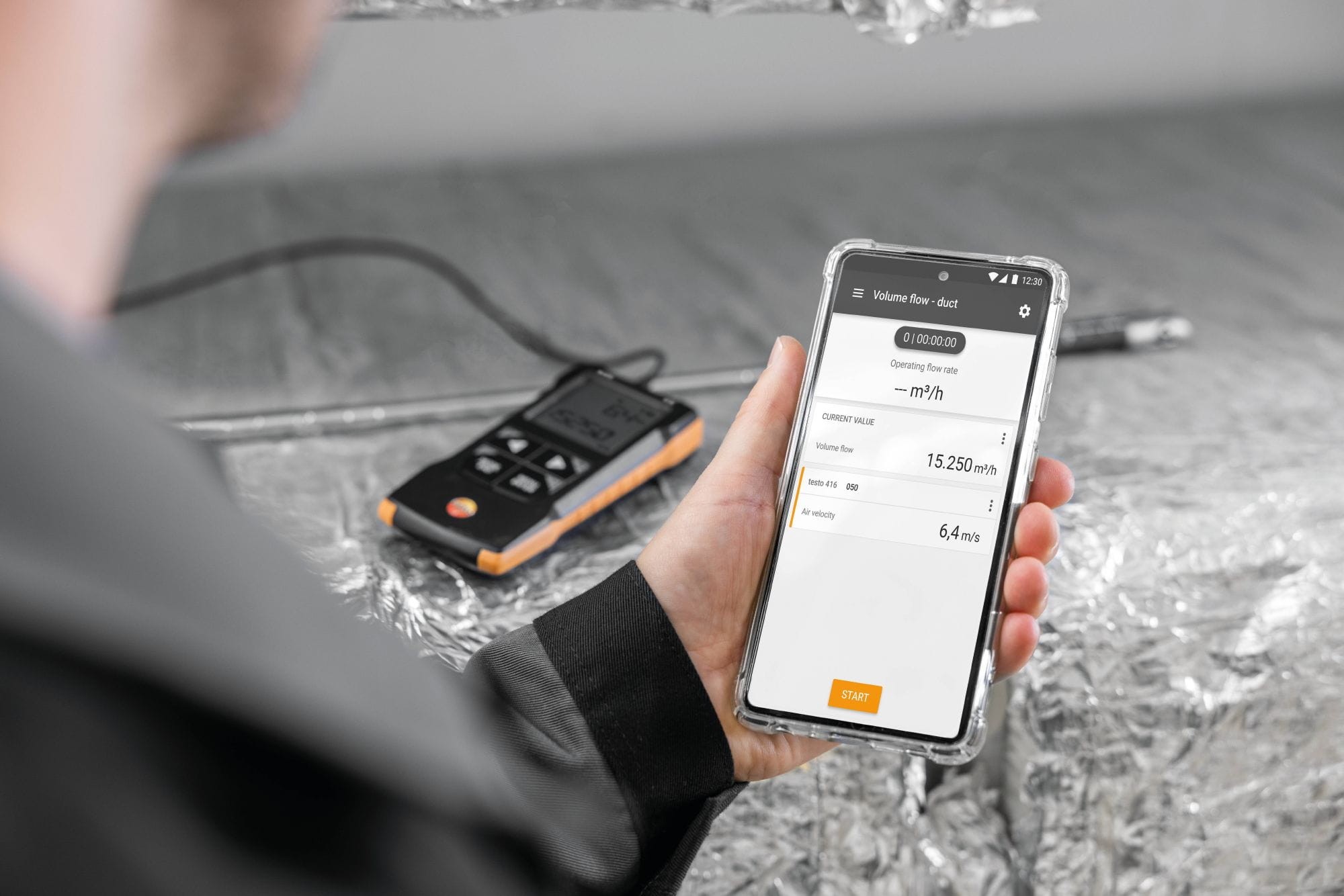 Kompaktowy anemometr wiatraczkowy testo 416 z sondą o śr. 16 mm, współpracujący z aplikacją jest idealny do prostego, szybkiego i precyzyjnego pomiaru prędkości przepływu i strumienia objętości w kanałach wentylacyjnych. Połączenie z aplikacją testo Smart App umożliwia konfigurację, wyświetlanie (również jako drugi ekran) i przechowywanie, jak również dokumentację mierzonych wartości bezpośrednio w aplikacji.